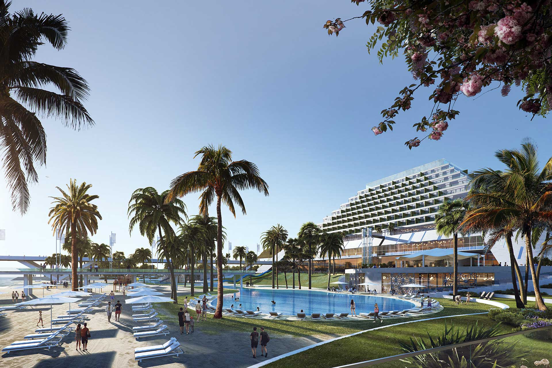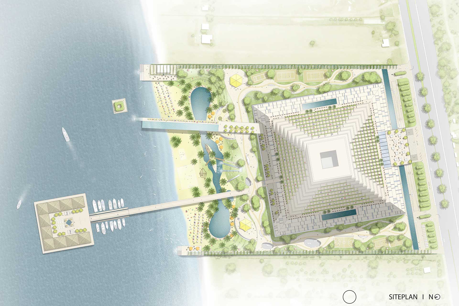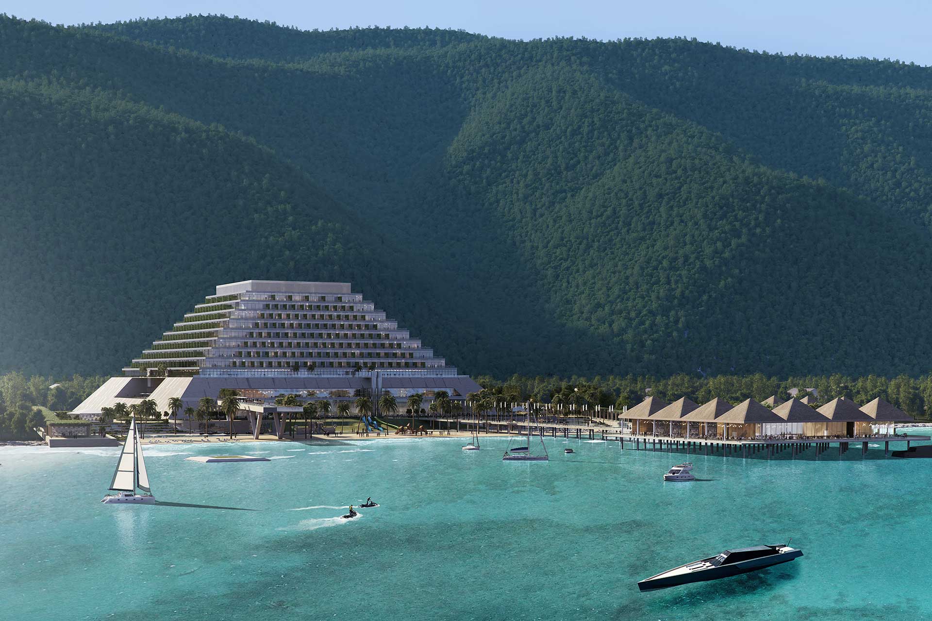 Beach Hotel Chilak sprengt Konventionen, in baulicher und konzeptioneller Hinsicht. Ausgelegt darauf, eine ganze Region wirtschaftlich zu beflügeln, befindet sich in einem einzigen Komplex ein Hotel der 7 * Kategorie, ein State-of the Art Convention Center und eine Mall mit etwa 30.000 m2 Shopping Möglichkeiten. Das Gebäude ist pyramidenförmig gebaut und bietet Platz für etwa 472 Suiten und Präsidenten Suiten und die größte, pyramidenförmig gebauten Lobby im Mittleren Osten. Ein reichhaltiges Angebot an Sport- und Erholungsmöglichkeiten runden mit den „Gardens of Chilak“, eine Oasenlandschaft im Außenraum, das Angebot ab.