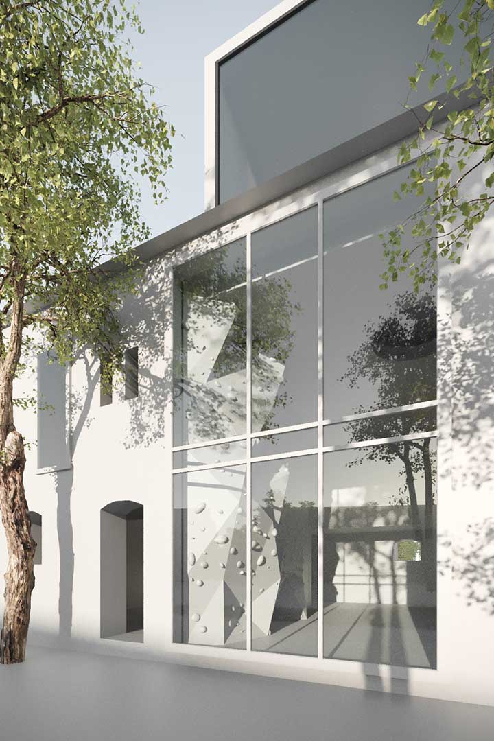 Das historische Gebäude, welches besonders an seiner Südseite mit verschiedenen Fenster-, Tür- und Toröffnungen gegliedert ist, und somit eine starke Identität aufweist, ist denkmalgeschützt. Somit erfolgte die Abstimmung zu einem modernen Gebäude in vielen Terminen mit dem Denkmalschutz. Das daraufhin erstellte Konzept sieht vor, das vorhandene Gebäude mit einem Volumen als Anbau zu ergänzen. Dieses Volumen nimmt die Form der alten Scheune auf und verlängert diese Richtung Osten, so dass das Gebäude an der Bottendorfer Straße städtebaulich eine stärkere Prägnanz entwickelt. Der dabei neuentstandene Haupteingang ist so konzipiert, dass eine direkte Sichtverbindung zum „Heiligen Kreuz“, auf dem Dach der Kirche der Klosterschule angelegt ist und man quasi „direkt auf dieses Wahrzeichen zu läuft“. Im neuen Volumen sind dienende Funktionen, wie Erschließungssystem, Toiletten und Aufenthaltsbereiche untergebracht. Somit ist die alte Scheune von diesen Zwängen befreit und kann größtenteils mit Klassenzimmer bespielt werden.